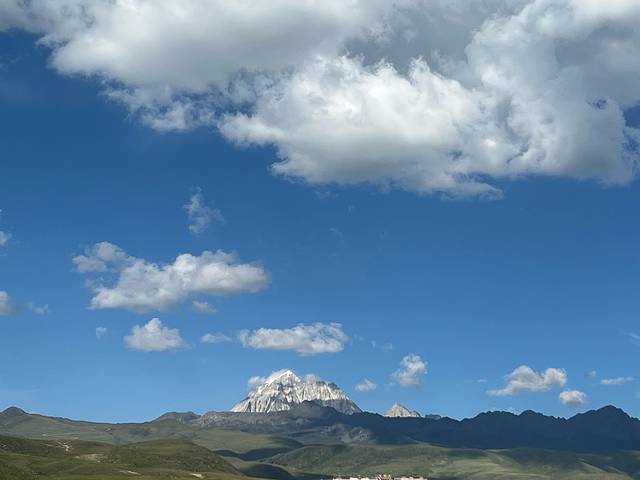 逛了一会儿,才发现原来贡嘎雪山还在云层的后面,很幸运在下山前看到了。直插云霄,又白云缠绕,不愧“蜀中之王”的称号。