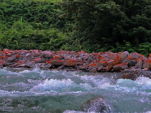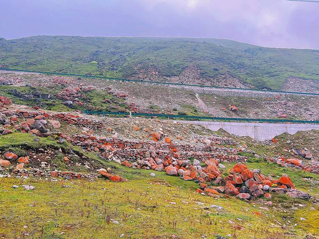 从海螺沟出发到康定,会经过有“世界红石公园”之称的红石滩,整侧大山的石头表面都是红色,独特且神秘