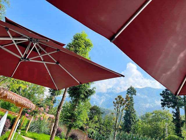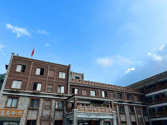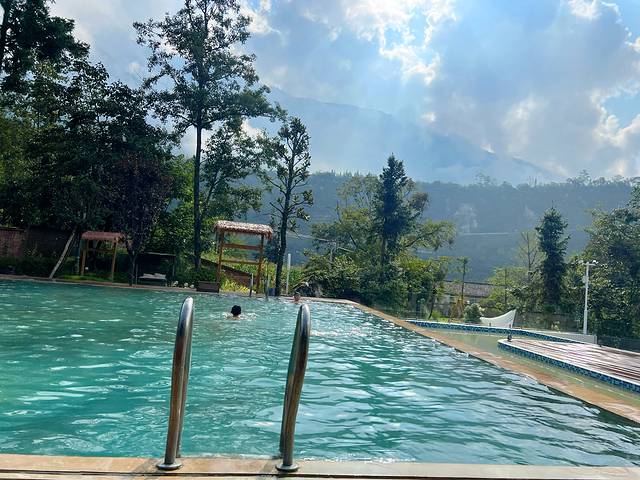 一早起来泡个温泉,风吹云动,太阳很近天很蓝