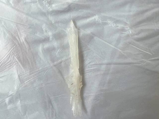 吃完后,用手粗鲁地把鱼头掰开,找到了这把宝剑刺。