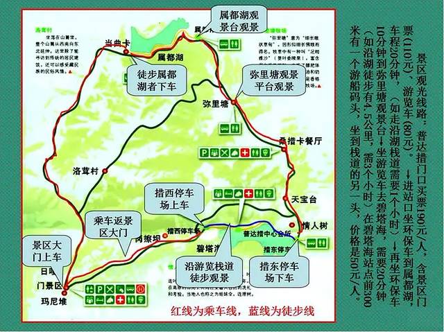再坐环保车30分钟到属都湖,沿湖走大概不到4公里,就可以回景区大门了。