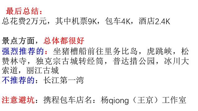 总花费2万元,其中机票9K,包车4K,酒店2.4K