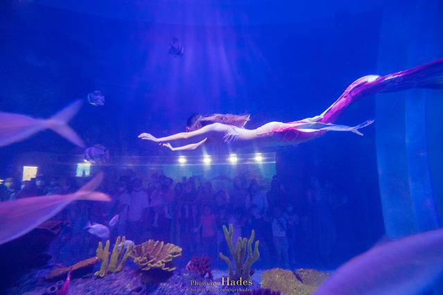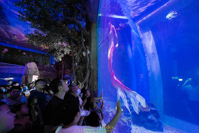 在海洋馆中,不仅有鲨鱼游弋,企鹅划水,白鲸亲吻,还能看到美人鱼水中漫游!