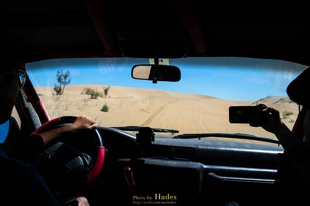 一整天都在穿越库布齐沙漠,从沙丘到荒漠,再到绿洲,行途中,可以深切的感受到鄂尔多斯的沙漠越来越少,绿意越来越多。所以,玩沙要趁早!