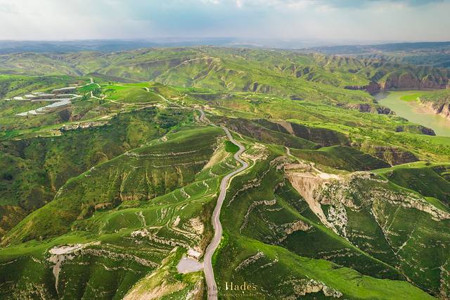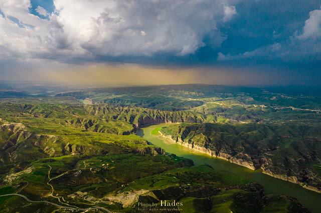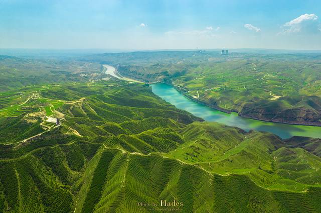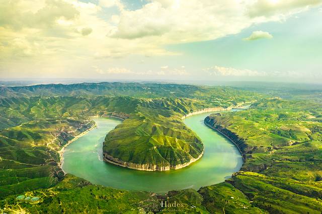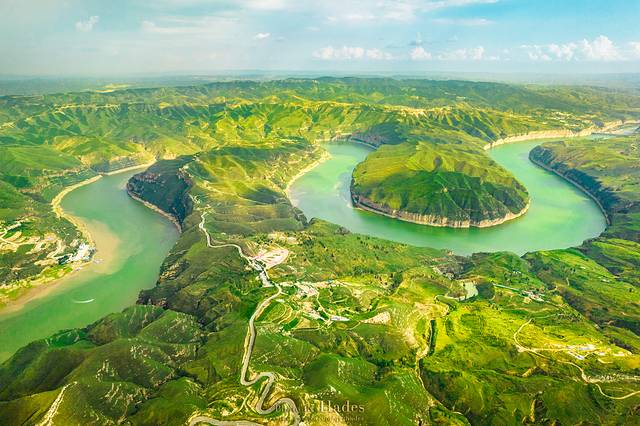 位于蒙晋交汇的老牛湾,就是黄河最灵秀的所在。黄河在这里画了幅太极图,冲刷出的大峡谷曲折壮阔,再配上黄土高原褶皱和沟壑,这幅青绿的山水,美的碧翠欲滴!
