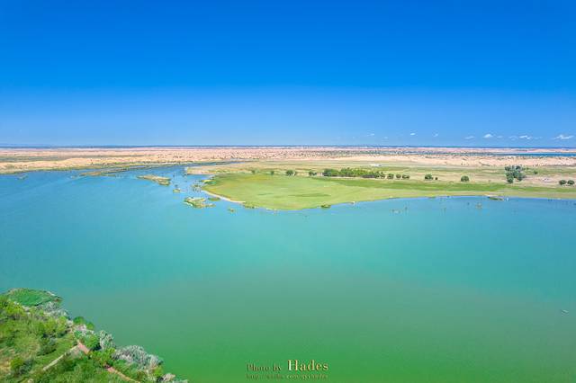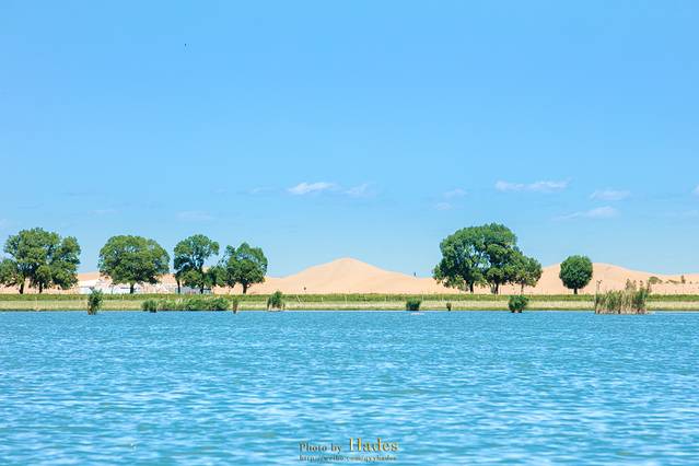 七星湖沙漠风景区位于绿洲之上,碧绿的湖水,美丽的草原,起伏的沙丘,蔚蓝的天空,远远望去,很有中东地区的异域之感。