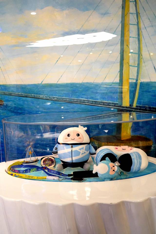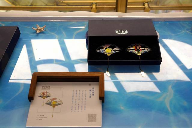 顺着楼梯来到二楼,邮轮的服务台就在楼梯口处。周边则是一些展柜,陈列着周边、文创小礼品等。选上一件小礼物以此来纪念,也是很不错的选择!