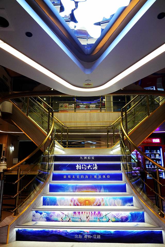 三楼与四楼就是全开放式的甲板露台了,邮轮的演出与互动活动也主要集中在这两层上。