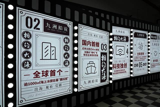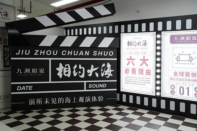 走进等候大厅,四周墙壁上就有这次演出的简介,慢慢看过来就能了解到:一会儿即将登上的观众船可是国内首艘近岸主题式Mini邮轮哦!