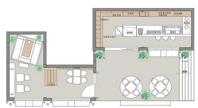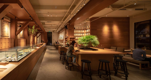 太白茶馆空间采用沉稳的原色木质、石材,室内环境在低色温灯光的衬托下,给人缓解焦虑。营造舒适和缓的休闲品茶氛围。以“人体尺度”为准则布局茶饮区,馆内墙壁展示着各种茶叶茶具和品茶仪式感的提示语录“煮茶、端坐”