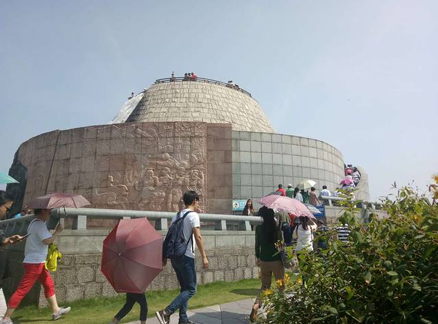 ③ 截流纪念园 正面仰视大坝:在大坝下游800米,有截流记事墙,大型机械展示场等景观。
