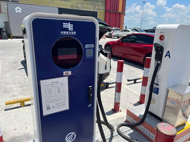 电白服务区的充电桩更少了,笔者排队等待30分钟才成功入位充电。
