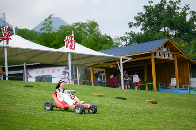 来滑草场又怎么能错过各种刺激的网红项目呢,极速漂流必须榜上有名,身体向前一倾,顺着水流整个人就以极快的速度向下俯冲,滑到中间阶梯时,甚至整个人都会悬空跃起,简直太吓人了!