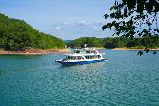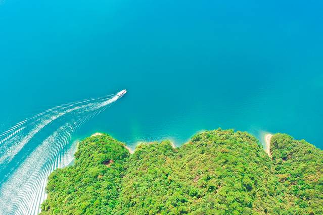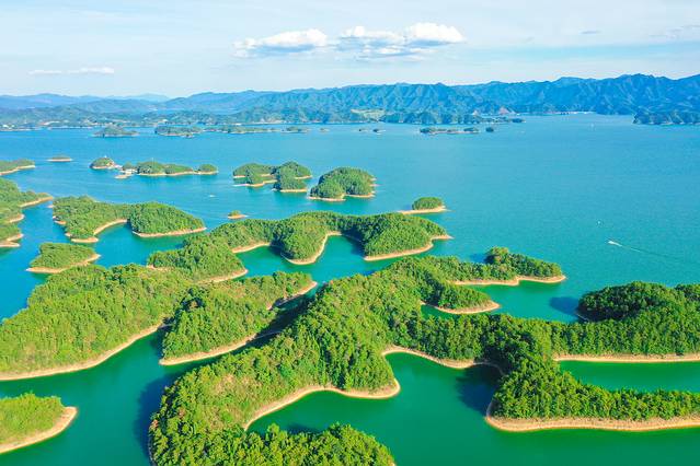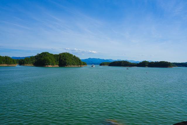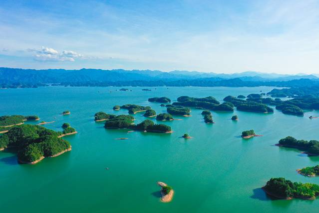 千岛湖就是一幅天然的水墨画卷,随四季更替而景色不同。这里的山是浓浓淡淡的墨,一笔一笔远。水是浅浅深深的蓝,一层一层深。人在湖中如游在画中,人在岛上则景在心中。这里有着最清澈湖水养育出的千岛湖鱼,喝一口汤,可以鲜美到心里。这里的空气清新,阳光明媚,满眼都是绿色的植物覆盖。这个夏天和我一起到千岛湖玩水吧。