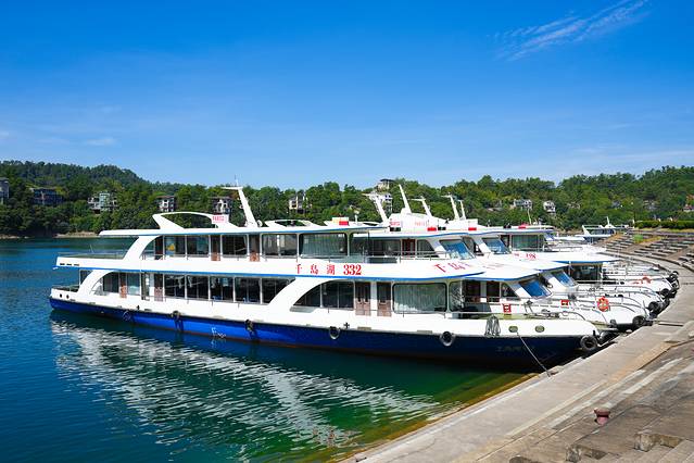 黄山尖,位于千岛湖东南湖区珍珠列岛,距千岛湖镇八公里,与羡山毗邻相望。主峰海拔二百六十六米,为珍珠列岛海拔之最。先坐船到黄山尖码头,再坐缆车上去观景台,我们一早就来到了东南湖区码头,从这里坐船前往你黄山尖, 夏天的千岛湖景色真的是太美了,蓝蓝的天空与蓝色的千岛湖构成了一幅画山水画。