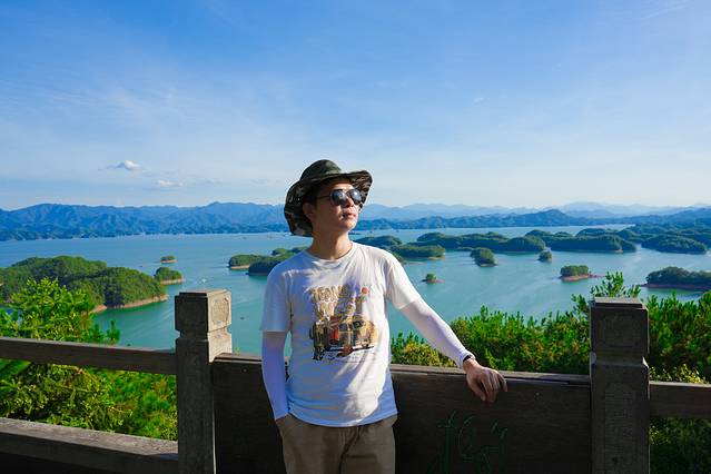来到千岛湖,人们常说到“不上梅峰观岛,不识千岛湖真面目”。到了千岛湖梅峰观景台,走出观景台眼前是一望无际的湖面,形状多变的岛屿坐落在湖面上,在岛屿上有连绵起伏的山,有的直入云天,有的矮如土墩,每一座山峰都会被树木茂盛的枝叶覆盖。碧绿的湖水中,有着白色的浪花,游船从湖面经过,就会有白色的一条线,湖水是蓝中透绿,在阳光的照耀下,就会交出点点星光,湖面好像撒下了闪亮的鱼鳞,五彩缤纷,令人目眩。这样的湖水映衬着一座座山峰美不胜收。