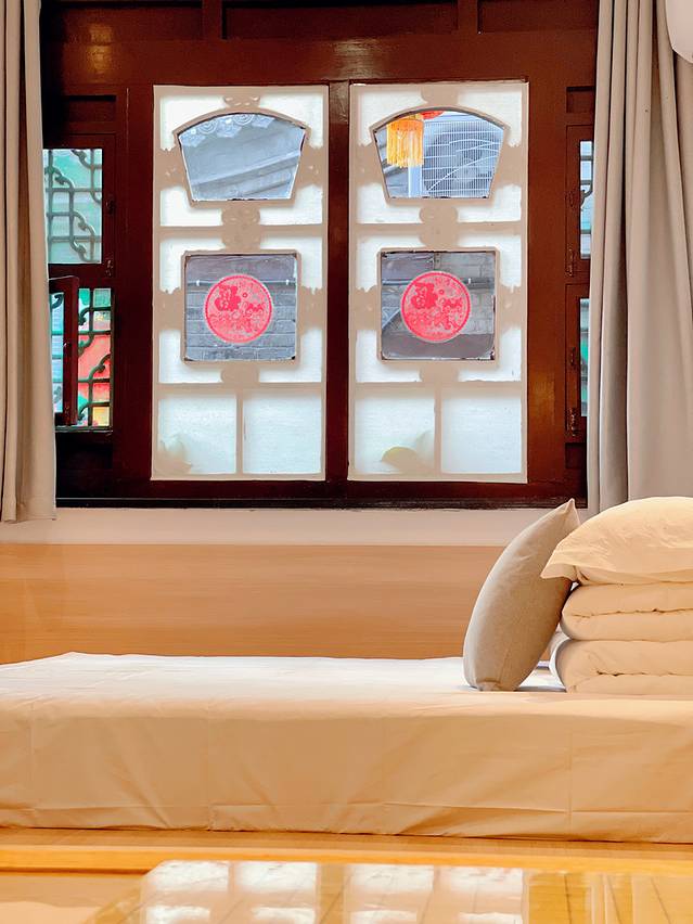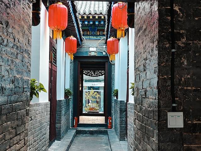 ③印迹慢生活:入口玄关处的设计有一丝文艺小清新的范儿,古代大户人家小院落+干净小清新的房间氛围,出门就是平遥县衙。