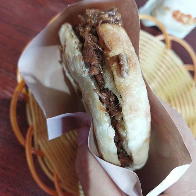 这是钟点房楼下卖的的肉夹馍,面饼暖香卤肉软烂,麦香香料香肉香融合,坐车的所有疲惫都一扫而光,在西安不管哪一家吃肉夹馍估计永远不会踩雷。我爱肉夹馍还有一段"远古"的记忆,因为多年前在北京吃过,那时候没有钱,当然现在也没有哈哈😄,那时候觉得那是最好吃的美味了,多年后那个味道一点也没有变。