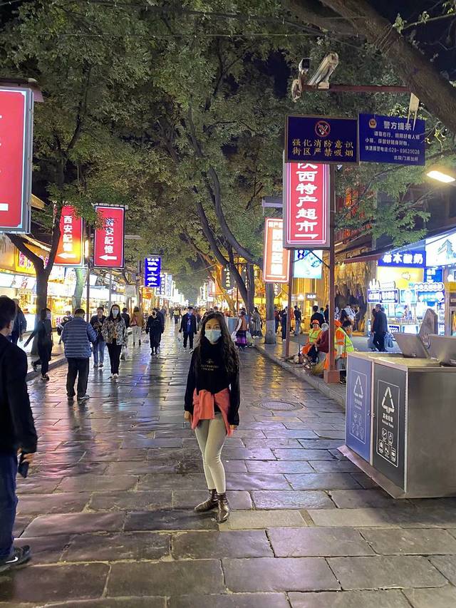 我们住的是大雁塔附近的一个小区内的民宿,200多一晚,一室一厅一卫一厨,北欧风,茶具投影什么都有,厨房还有特别多生活需要用的小东西。晚上朋友到了,我们去楼下吃宵夜,附近特多好吃😋的,都是当地人。点了啤酒🍺烤肉串冻肉皮,还有一些普通的我没有拍,肉串是半斤新鲜羊肉切的,分量特别足,味道自是不用说,说实话冻肉皮是我第一次见也是第一次吃,这种食物在我们四川人饭桌不常见,吃起来不觉得是在吃肉,有点像不甜的果冻,当然口味更厚重复杂,不是果冻那么单调,分量太多最后都有点吃不下了。