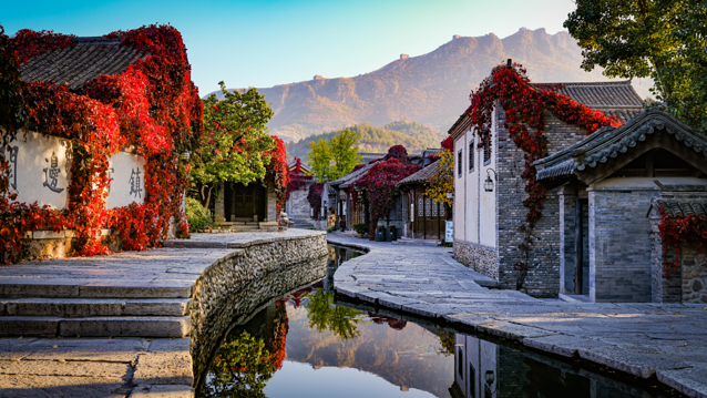 位于京郊密云的古北水镇,距离北京市区驱车不足两小时,直通车、旅游专线、市郊铁路怀密线等多种交通路线均已开通,可满足不同游客近距离赏红叶需求。