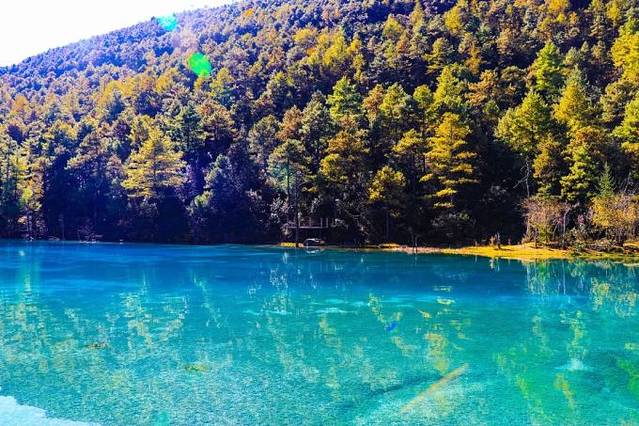 蓝月谷,在晴天时,水的颜色是蓝色的,而且山谷呈月牙形,远看就像一轮蓝色的月亮镶嵌在玉龙雪山脚下。