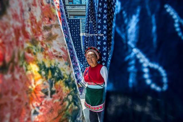 ,扎染是我国古代三大印花技术之一,在周城,扎染以白青两色为主,白色象征吉祥,青色象征希望。