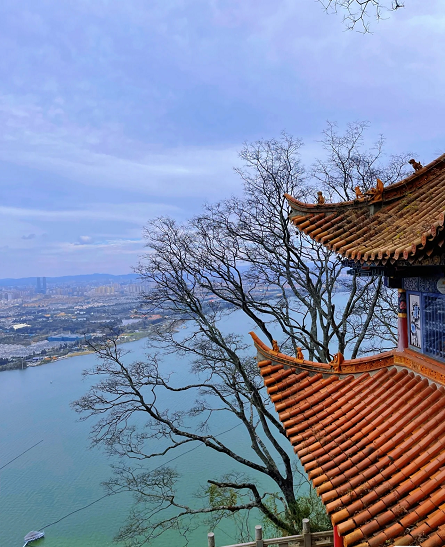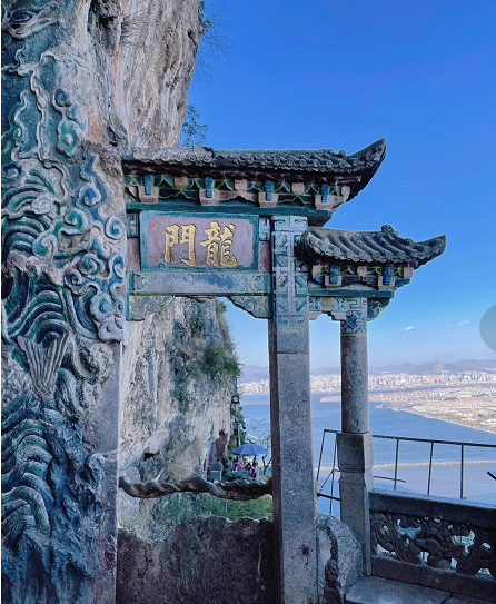 顺着崎岖的公路盘曲而上,道路两旁古木参天,山上可以看到滇池,真的很美,爬到龙门,听本地人说,摸了龙门就可以鲤鱼跳龙门,会带来好运。