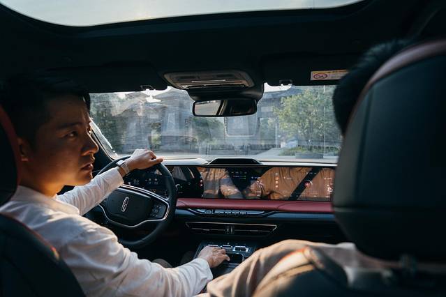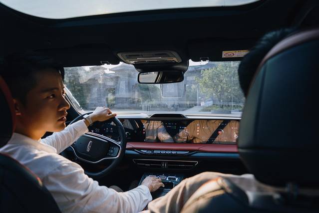 真皮覆盖的内饰将质感体现得淋漓尽致,贯穿中控台的4K超大联屏增加了长途驾驶的愉悦与便捷。不仅可随时监控车辆状态与导航提供,还内置了林肯星云人机交互系统。前往都江堰之前,只需直接操作或语音唤醒,屏幕上就会出现3D地图导航。