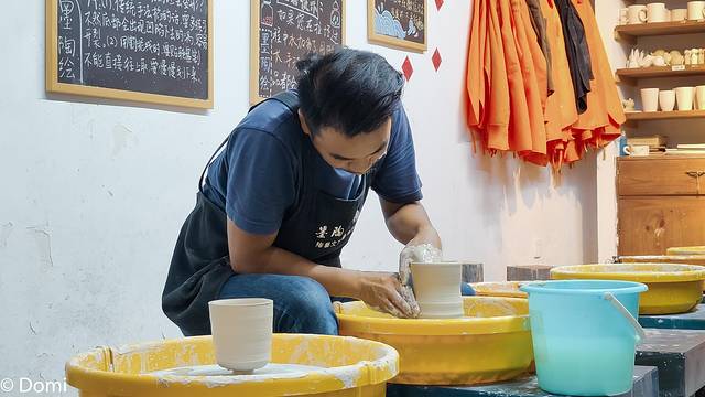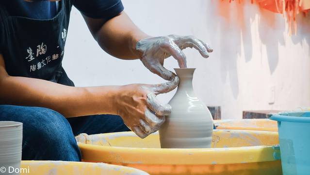 在手作体验坊,看着陶泥一点点的变化,感概老师的熟练手法,也感叹自己的技术不精。这真是一件熟练活儿,虽然以前学过一两次但是想要做出一个完美的器皿还是有些困难,只当生活体验一番好了!