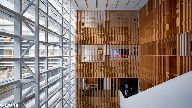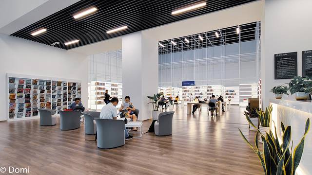 7层的高度,每一个细节都是精益求精,感召着人们走进书籍的殿堂,书香悠悠,沁人心脾。公共的阅读空间分为不同的区域,整体设计以简洁大方为主,白色、原木色以及深灰色的碰撞,让空间显得轻盈舒适。