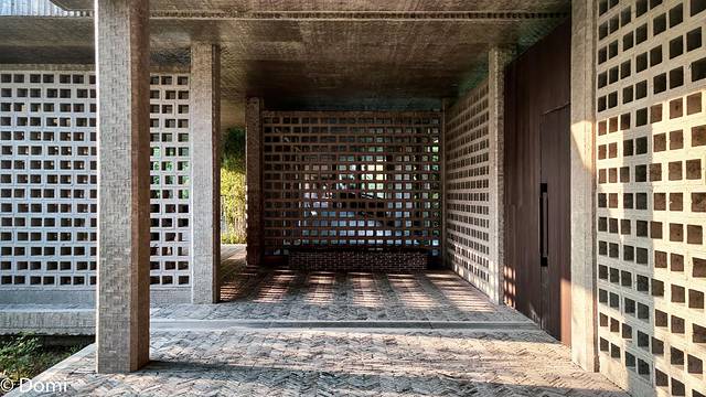 1万多平米的土地上承载的是一座极具建筑的特色的园林式博物馆,砖块在这里被运用地出神入化,不同的拼砌手法颇具高级的美感,打造的长廊有一种质朴大气的美,光线通过孔隙落在地上,斑驳迷人。