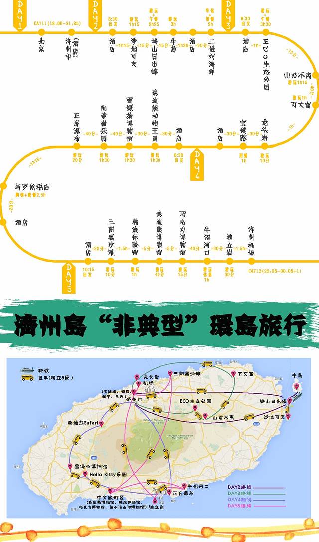 如果是包车游玩济州岛,且像我们一样住的都是同一家酒店,那么就意味着并不是真正意义的环岛游,所以在路线规划上尽量将同一区域的景点规划到一起,我包车的四天里,第一二天主要玩东北,第三四天主要玩西南。
