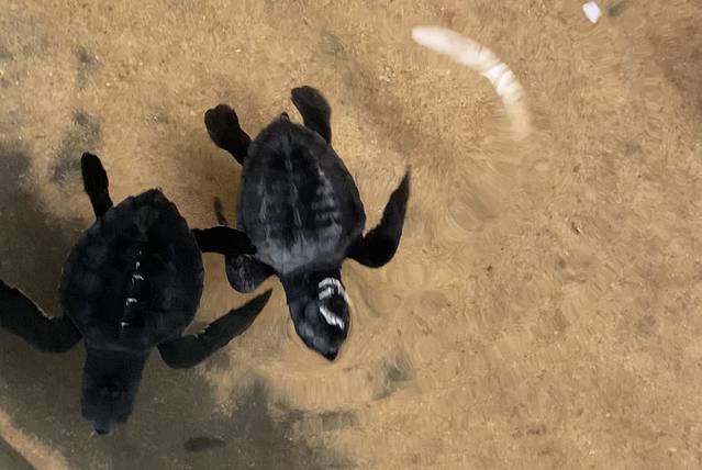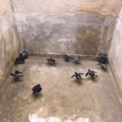 这就是破壳1天的龟宝宝啦,可可爱爱,摇摇晃晃的都游不稳。
