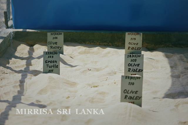沙地里埋着海龟蛋,标记好时间和品种,等待龟宝宝的破壳。