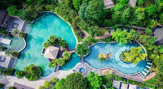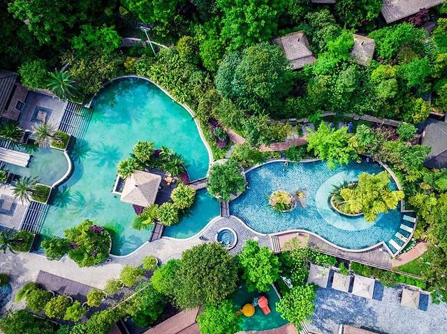 除了温泉和游泳池,东南亚风格的设计也是麓棠温泉酒店的亮点之一,热带丛林、泰式建筑,瞬间感觉到了清迈,真不愧是某书上的热门网红打卡地。