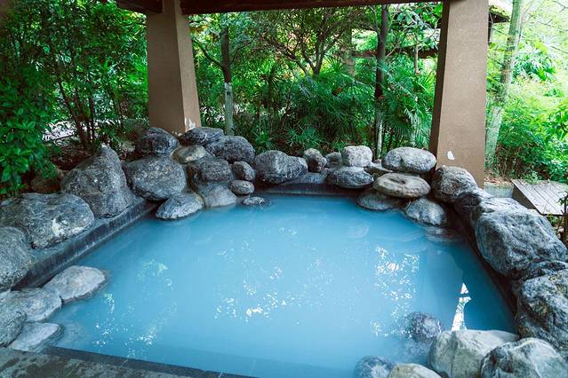 借助山势自然高差,温泉池以层叠式建于绿树耸翠之中,亭台楼阁,草木茂密,这样的温泉池谁不爱?