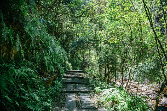 绿的彻底的森林王国,你以为是森谷,转瞬之间却变成崖壁瀑布。一条下坡路上的徒步路线,走在清凉山涧。