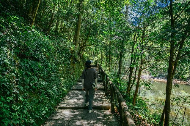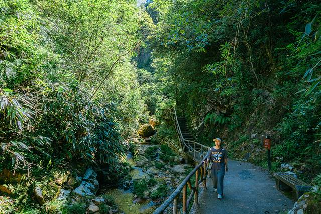 神龙谷是国家级森林公园,海拔位于830—1516.3之间,其中森林覆盖率到达了88.8%,这种海拔加上森林绿植的加持,让神龙谷在盛夏也格外的凉快。午后3点,这个本应是一天中最炎热的时刻,但是神龙谷内去额能感受到丝丝凉意,连吹过来的风都带着薄荷般的清凉,待得久了连身上的汗都慢慢收拢,真是舒服。