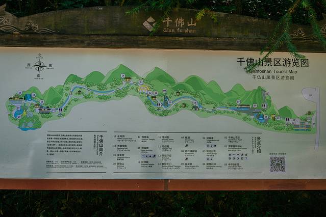千佛山中有一座未来寺,就像很多深山中的寺庙古刹一样,未来寺也需要徒步进去。古道由鹅软石和石阶组成,爬升不高,路途不难,一上一下需要原路返回,走的慢了大概也可以在2小时里面走完千佛山。整个景区内峡谷清幽,林木茂密,一条山泉穿行其间,造就了森林中的瀑、池、湖、潭、涧等。