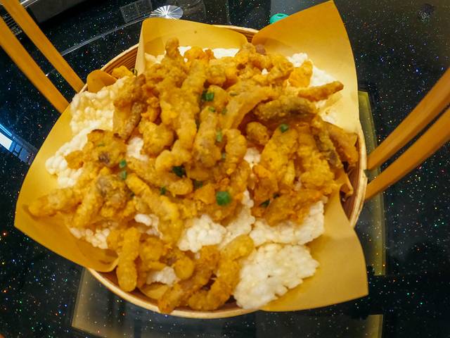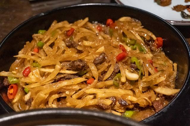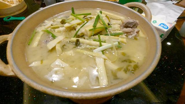 是真的好吃也是真得辣,其实点的时候厨师有提醒会很辣,但那时对我们的抗辣能力盲目自信,没想到直接被辣趴下了。其实它属于酸辣,仔排被切得很小再勾芡番薯粉,口感不错,但是辣味实在销魂。不过它还真有一种魔力,辣的承受不了但还是想吃。