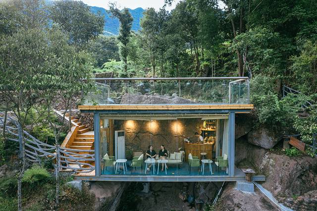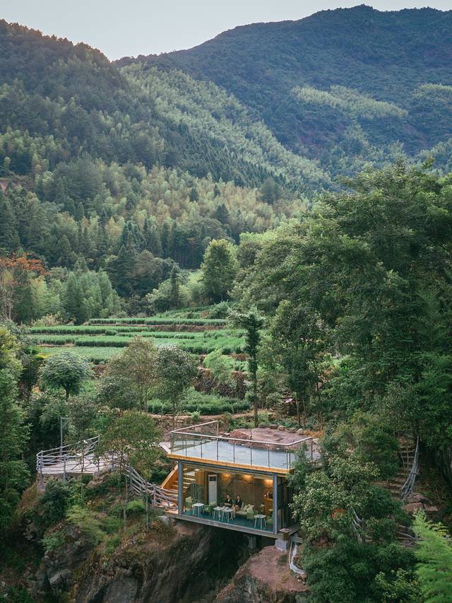 原本想着还早,主理人带我们去庄园的网红悬崖咖啡馆坐坐,在那里可以看见无敌山景。但那时谁也没想到这一坐就坐到了晚上,因为我们等来了一场瓢泼大雨。