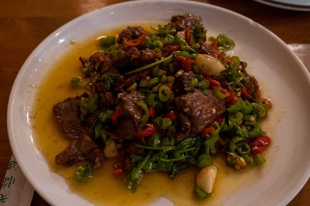 遂昌人喜欢吃牛肉,也擅长做牛肉,一道牛肉往往被做出很多种菜肴,不过我还是最喜欢爆炒。这道牛肉软硬恰到好处,调味也不错,带着微微辣,吃得特别爽。