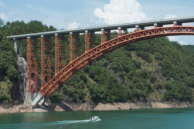 既有“小桂林”般的低丘缓坡,又有“小三峡”般的峭壁峡谷,还有一座架山横悬的乌溪江大桥。