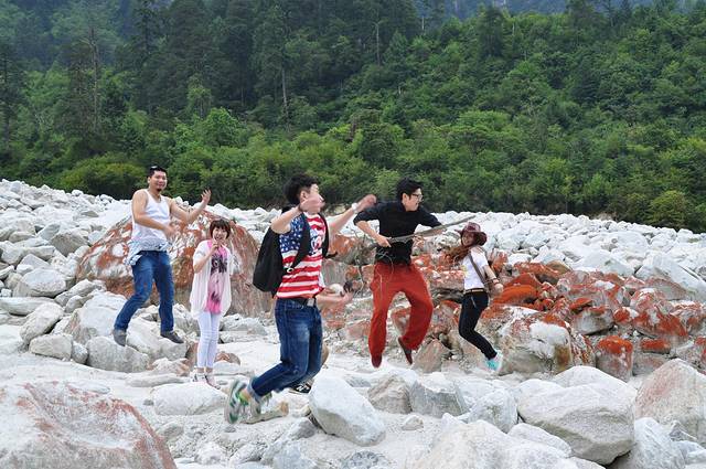 沟内的景色原始自然,有藏文化的彩带,有特有亚洲最大的红石滩。沟内的石头千奇百怪与岁月共存。