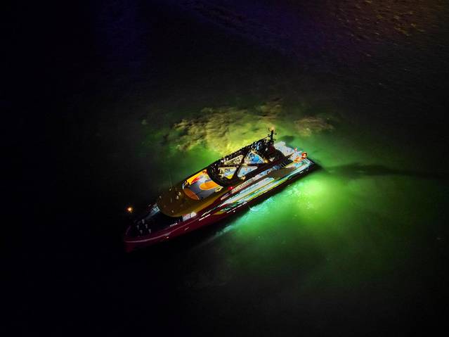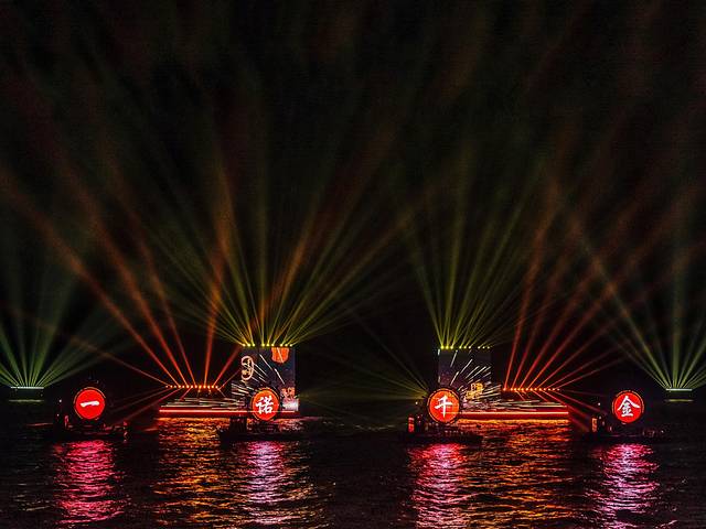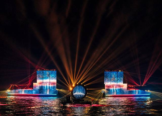 在-30℃至60℃的温度中皆可正常工作、屏体距离水面仅2米仍无惧强风大浪的1026㎡海上冰屏巨幕乃中国首创!“黑科技”加持下的屏幕拥有超强的延展性和丰富的画面信息量,无论是挺立于大海之上的巍峨雪山、飞旋于波涛之间的舞者、颇具地方特色的东西建筑还是漫天绚烂的烟火,景随船动、人随景移……视觉体验一级棒!
