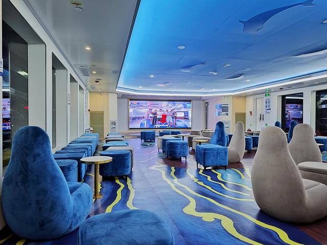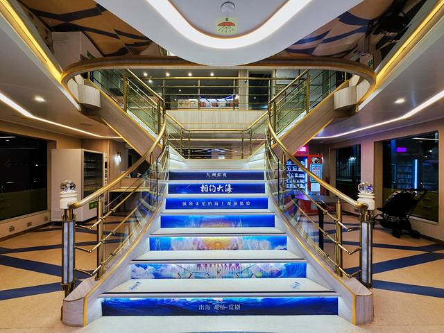 内饰融入国潮文化、海洋风情和科技元素,堪称是集现代设计感和中国传统美学元素于一身的粤港澳大湾区海上旅游观光新名片!