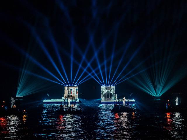 《九洲船说·相约大海》是一场突破常规、颠覆传统的海上实景光景剧,亮点满满: