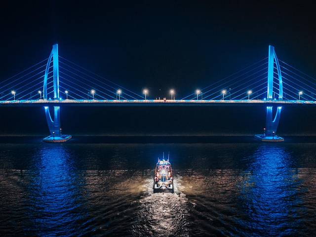 乘近岸主题式迷你邮轮出海,近观“"现代世界七大奇迹"”港珠澳大桥缤纷夜景,赏鉴海上巨作《九洲船说·相约大海》!