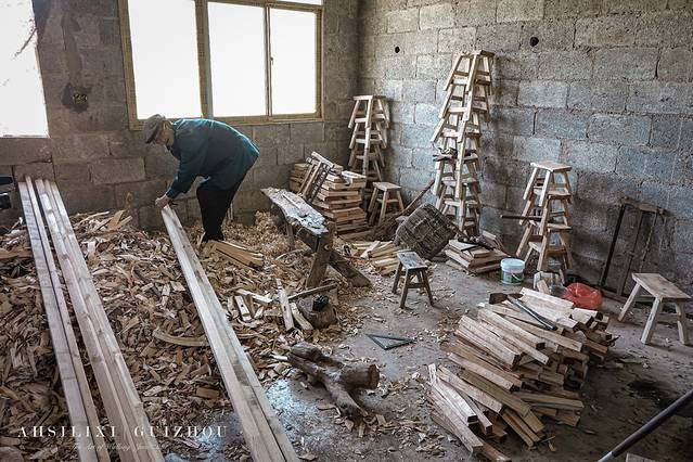 这些板凳是老爷爷纯手工制作,童叟无欺。