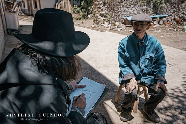 我来阿西里西的第二天,意外收获了这里的第一个晴天。艺术家们开始各自寻找他们的灵感,有些去了县城,有些去了贵阳市,体验了第一天的“购物之旅”,我更倾向看看这里的人文,小海村小分队是我今天的目标。